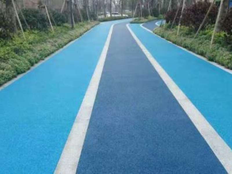 (3)具有良好的路用性能,在不同的溫度和外部環境作用下,其高溫穩定性、抗水損壞性及耐久性均非常好,且不出現變形、瀝青膜剝落等現象,與基層粘結性良好。(4)具有色澤鮮艷持久、不退色、能耐77℃的高溫和-23℃的低溫,維護方便。2、彩色瀝青路面的定義:所謂彩色瀝青路面是指脫色瀝青與各種顏色石料、色料和添加劑等材料在特定的溫度下混合拌和,即可配置成各種彩色的瀝青混合料,再經過攤鋪、碾壓而形成具有一定強度和路用性能的彩色瀝青路面。
